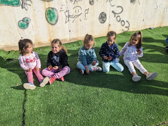 Después de estar varios días limpiando y preparando nuestro huerto, por fín hemos plantado en él. Para ello, hemos tenido dos ayudantes muy especiales, el abuelo y el papá de Jose que saben un montón del tema pues tienen un huerto enorme en casa. Tomates, pimientos, calabacín, pepinos ya están creciendo en el huerto del cole y esperamos que antes de que acabe el cole podamos recoger estas ricas hortalizas. También hemos probado unas ricas fresas que Jose nos ha traído de su huerto ¡estaban de rechupete!