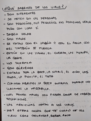 Después de esta puesta en marcha del proyecto, hemos pensado que teníamos que informar a nuestras familias por ello hemos decidido escribir una carta donde hemos dibujado al equipo anti-covid y hemos escrito nuestro tema de investigación.